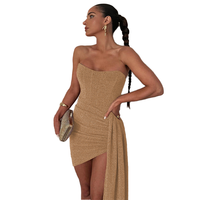 Liu Ming เดรสสั้นรัดรูปไร้สายเซ็กซี่ของผู้หญิงสำหรับฤดูร้อน2024โลโก้ออกแบบได้เองสไตล์ลำลองสีพื้นเอวธรรมชาติดิจิตอล